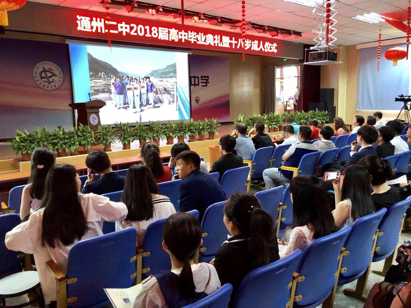 6月9日,通州区第二中学在学校报告厅隆重举行了2018届高三毕业典礼暨十八岁成人仪式活动。